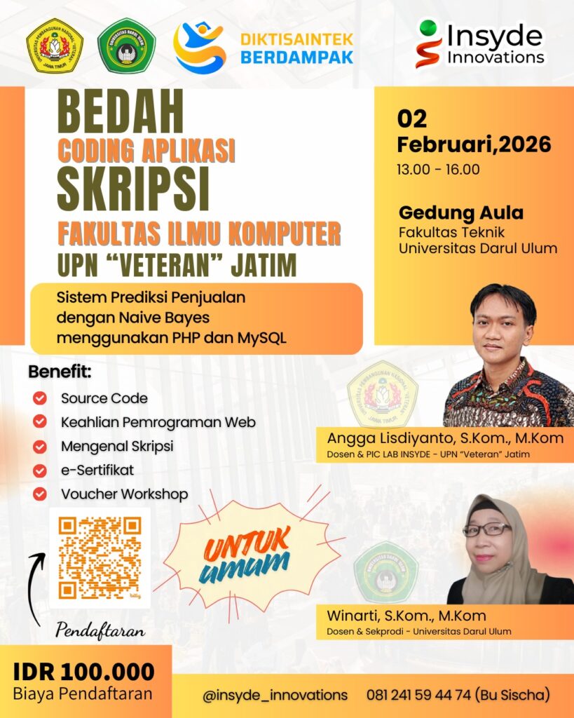 Fakultas Ilmu Komputer Universitas Pembangunan Nasional “Veteran” Jawa Timur melalui Insyde Innovations (Insyde Business) melaksanakan kunjungan dan pertemuan resmi dalam rangka penjajakan kolaborasi akademik dan pelaksanaan Workshop Bedah Skripsi–Coding Aplikasi bersama Universitas Darul Ulum (UNDAR) Jombang, pada Selasa, 13 Januari 2026, pukul 10.30 WIB.