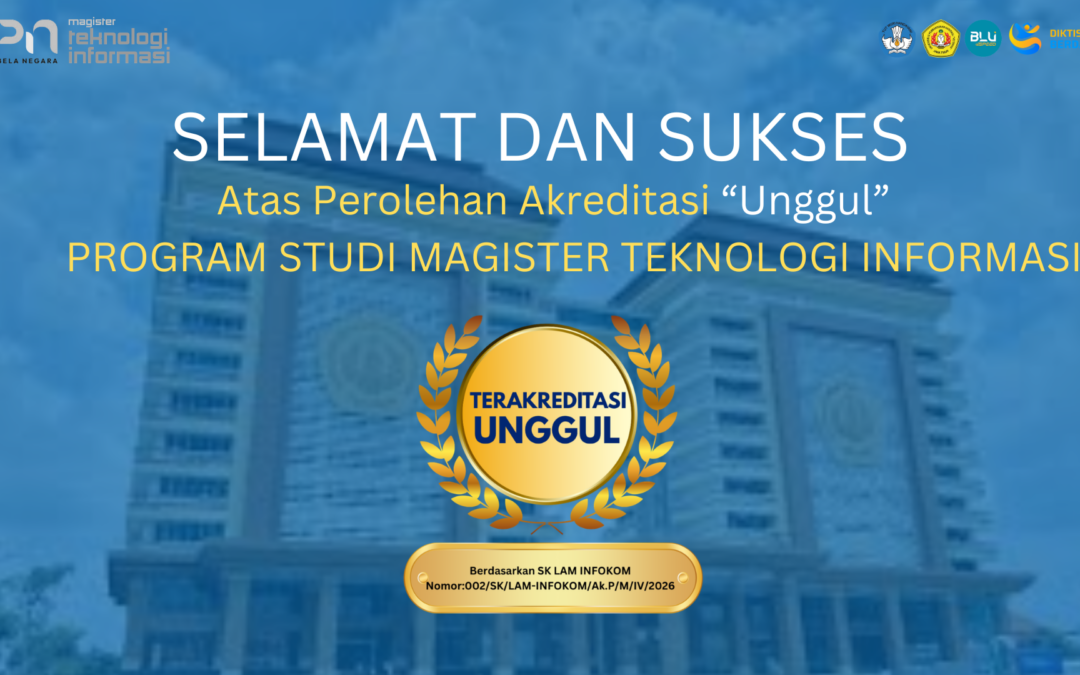Kabar membanggakan datang dari Program Studi Magister Teknologi Informasi. Setelah melalui proses asesmen yang ketat, prodi ini berhasil meraih predikat Akreditasi Unggul — standar tertinggi dalam sistem penjaminan mutu perguruan tinggi di Indonesia.