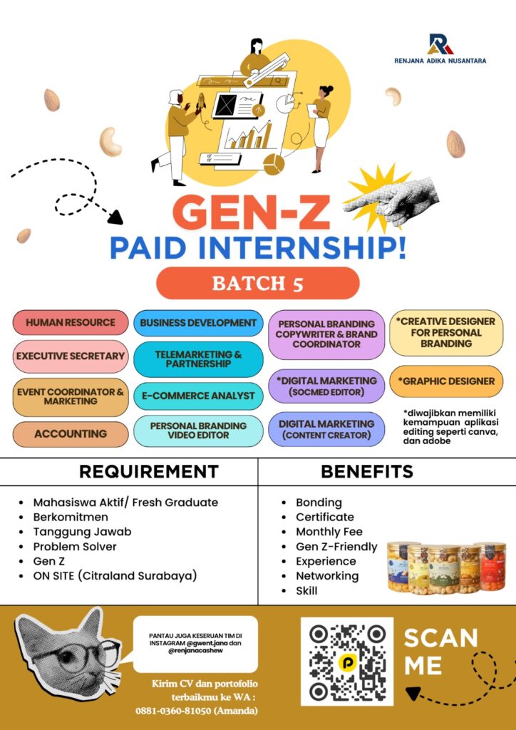 PT. Renjana Adika Nusantara kembali membuka kesempatan Intership On-Site – Citraland, Surabaya untuk kamu mahasiswa aktif / fresh graduate yang punya komitmen tinggi, problem solver, dan mau berkembang lebih cepat lewat real responsibility 🚀