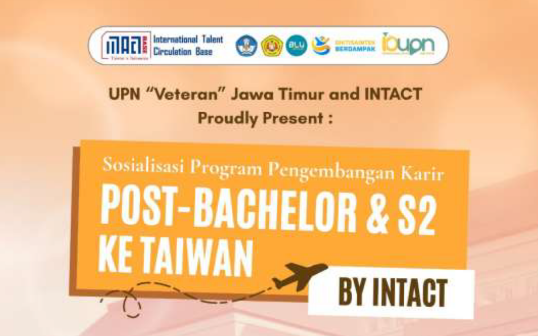 UPN “Veteran” Jawa Timur melalui Kantor Internasional dan Sekretariat Eksekutif mengundang seluruh mahasiswa untuk hadir dalam kegiatan Sosialisasi Studi Lanjut Taiwan yang diselenggarakan oleh International Talent Circulation Base (ITCB) Taiwan–Indonesia.